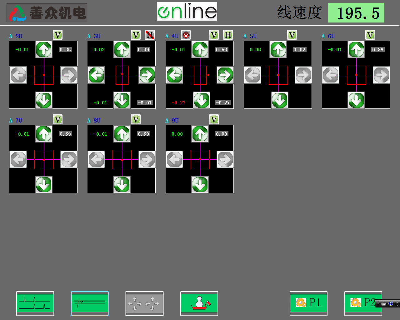 - 每一个控制单元完全独立并采用盒式设计,通过总线相连,增强了可靠性且方便维护;每个控制单元上都可以独立显示与设置单元号、手动调整、修正量微调、误差显示和系统状态等功能。